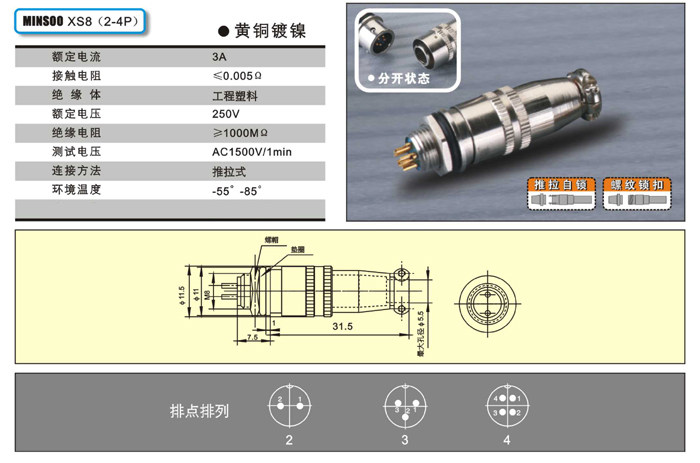 MINSOO航空插头234芯连接器 XS8JK-2P/Y XS8JK-3P/Y XS8JK-4P/Y